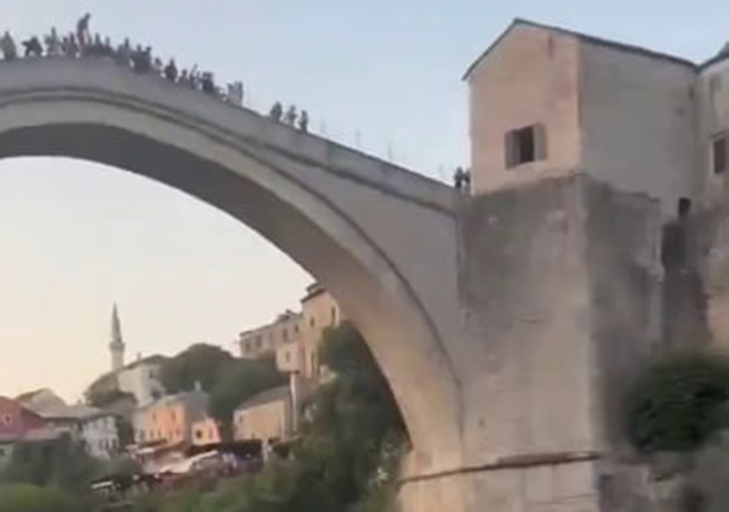 В сети распространяется видео, на котором пьяный турист прыгает со Старого моста и падает рядом с проплывающей лодкой с отдыхающими, после чего получает несколько ударов от разгневанных местных жителей.