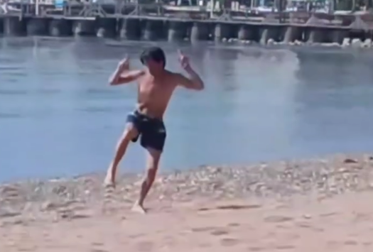В сети продолжают распространяться кадры уличного танцора из туристической столицы Черногории. Где бы он ни появлялся — на оживленных улицах или на пляже, неизменно держит ритм и заряжает прохожих позитивом.