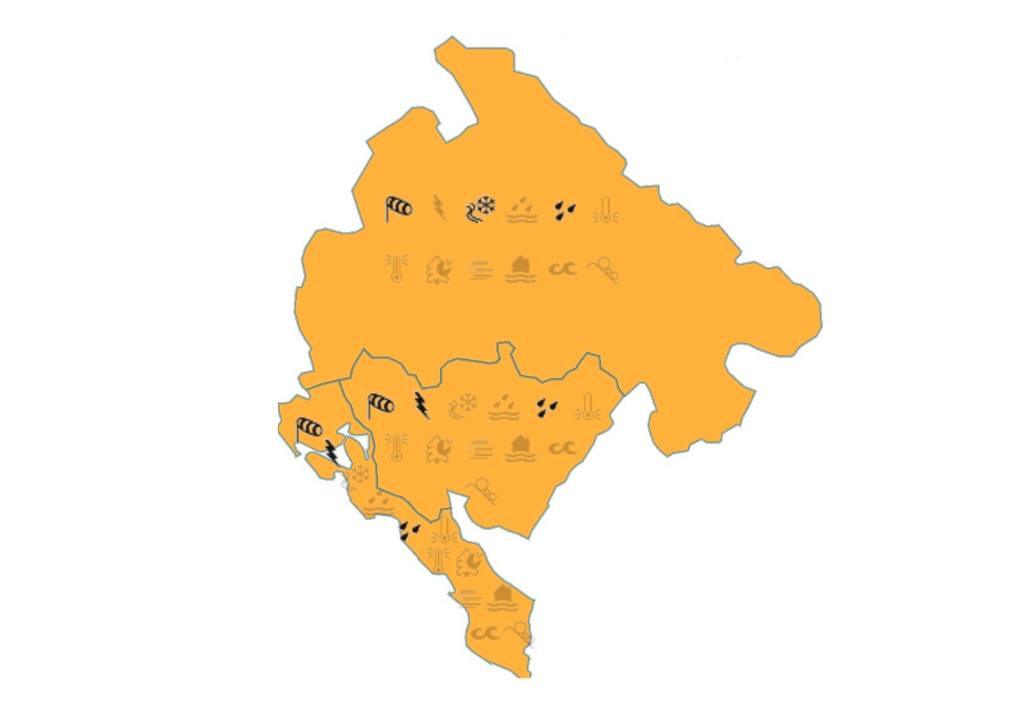 Институт гидрометеорологии и сейсмологии объявил на завтра оранжевый уровень предупреждения по всей Черногории. Порывы ветра могут превышать 50 км/ч. На севере ожидается не менее 40 мм осадков за 12 часов, в центральных районах и на побережье — не менее 50 мм за 24 часа. Возможен град.